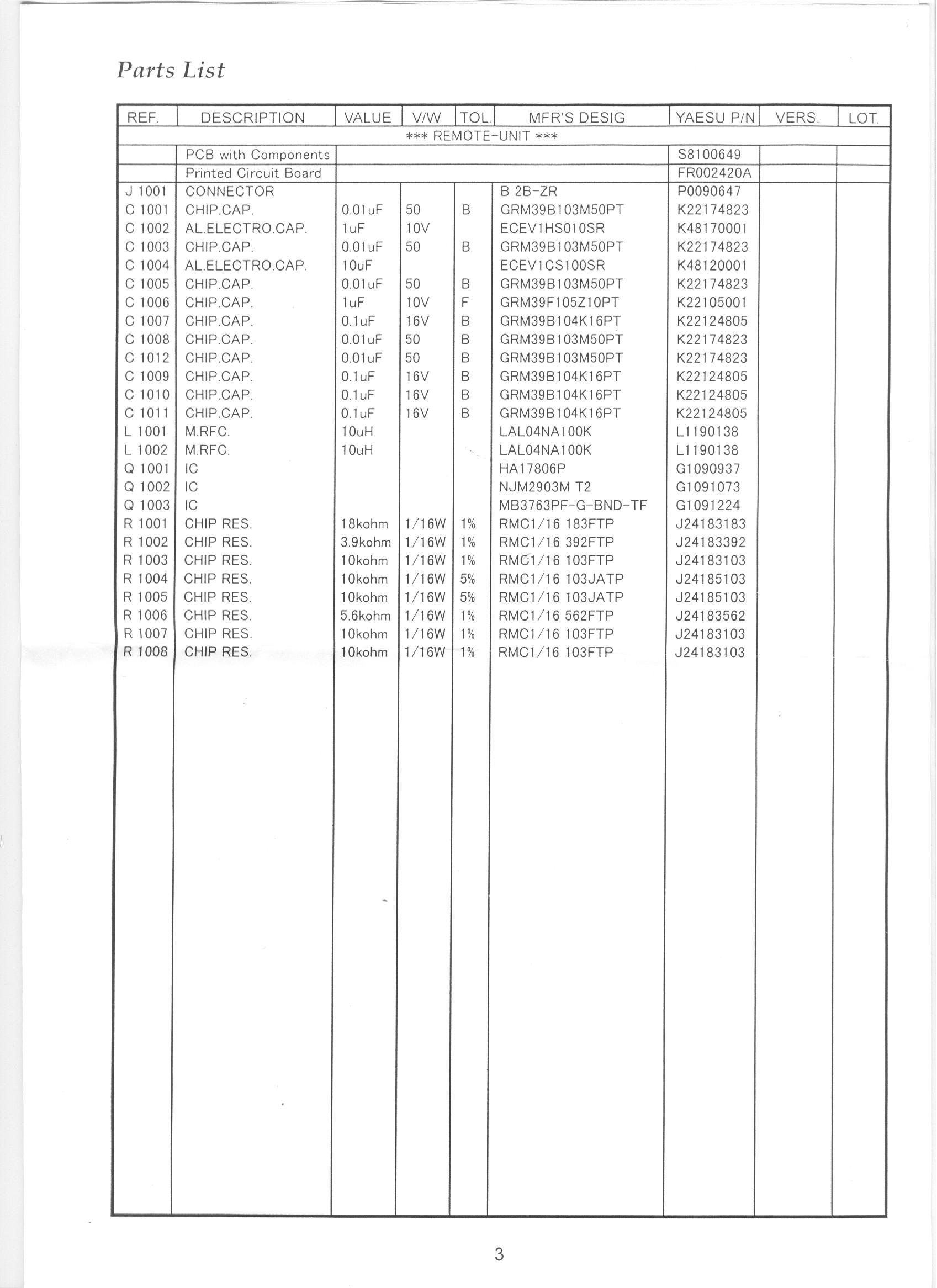 Page 3. Parts List |