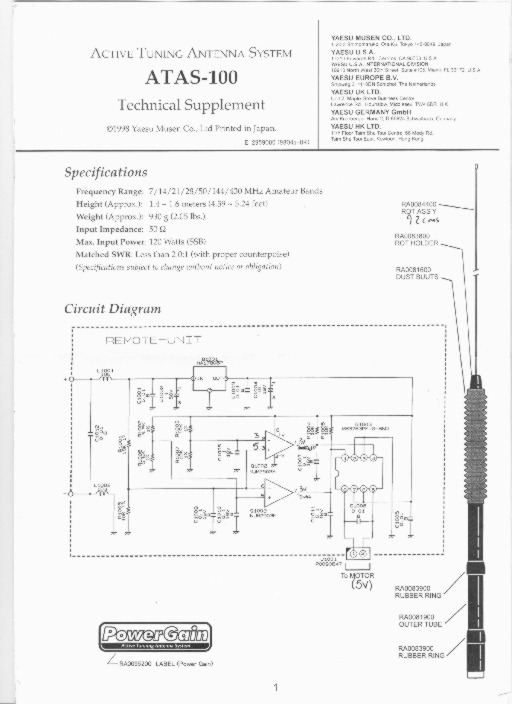 The Technical Supplement content of this page was provided by Rainer, SM5LBR. Click on any image to get a full resolution drawing of it. The images are very instructive in explaining the inner workings of the ATAS100 antenna.