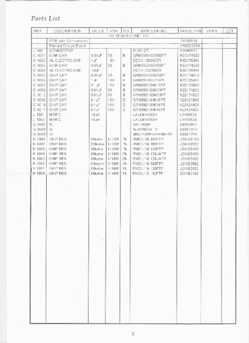 Page 2. Parts Layout on PC board |