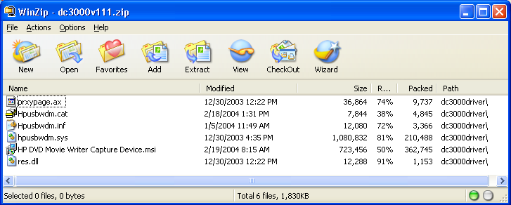 When you double-click on the dc3000v111.zip file, you should see a window like the one above. Extract the files to a convenient folder whose location will be easy to remember. Then launch the Device Manager, open up the 'Sound, video, and game controllers', and then right click on the 'HP DVD Movie Writer dc3000' and select 'Update Driver'.