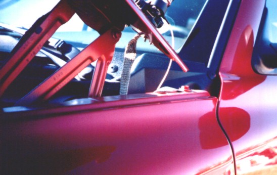 This picture shows a close up of the Diamond K400 trunk lip mount fastened to the hood of the vehicle.