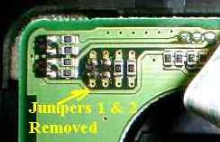 Back of front panel. Top left corner.Remove jumpers 1 & 2, leave