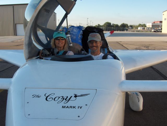 Marc and Deanie getting ready to depart Greeley for Phoenix via Taos and Durango.